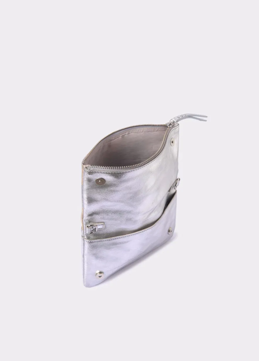 Bolso De Hombro Color Plata Con Estampado Patchwork Y Detalle De Bolitas En El Frontal. Dispone De Doble Correa; Una Mas Corta Para Llevar Del Hombro Y Otra Mas Larga Para Llevar De Bandolera.Dimensiones:13X 21X 4 Cm