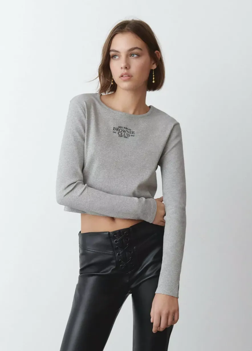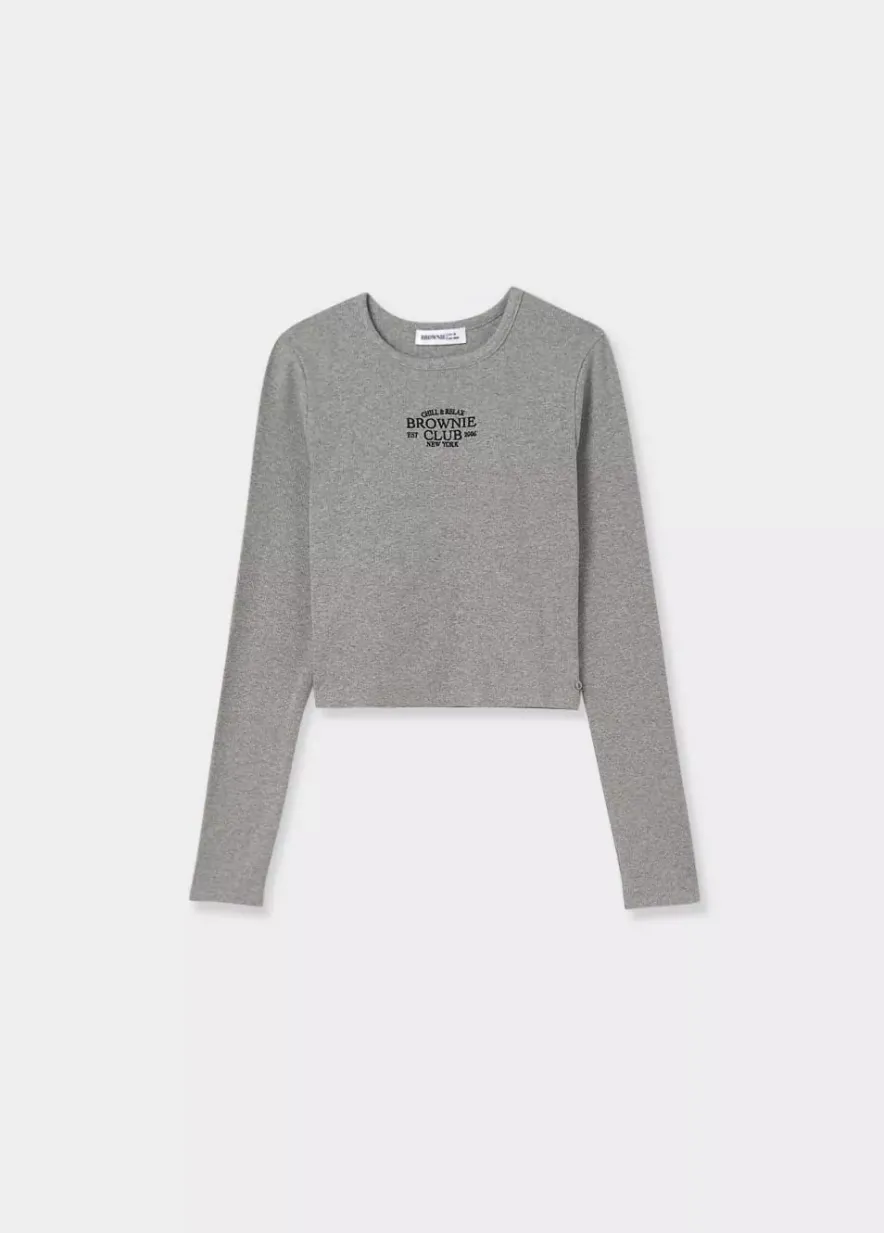 Camiseta Cropped De Manga Larga, Cuello Redondo Y Mensaje En El Frontal.Composicion: