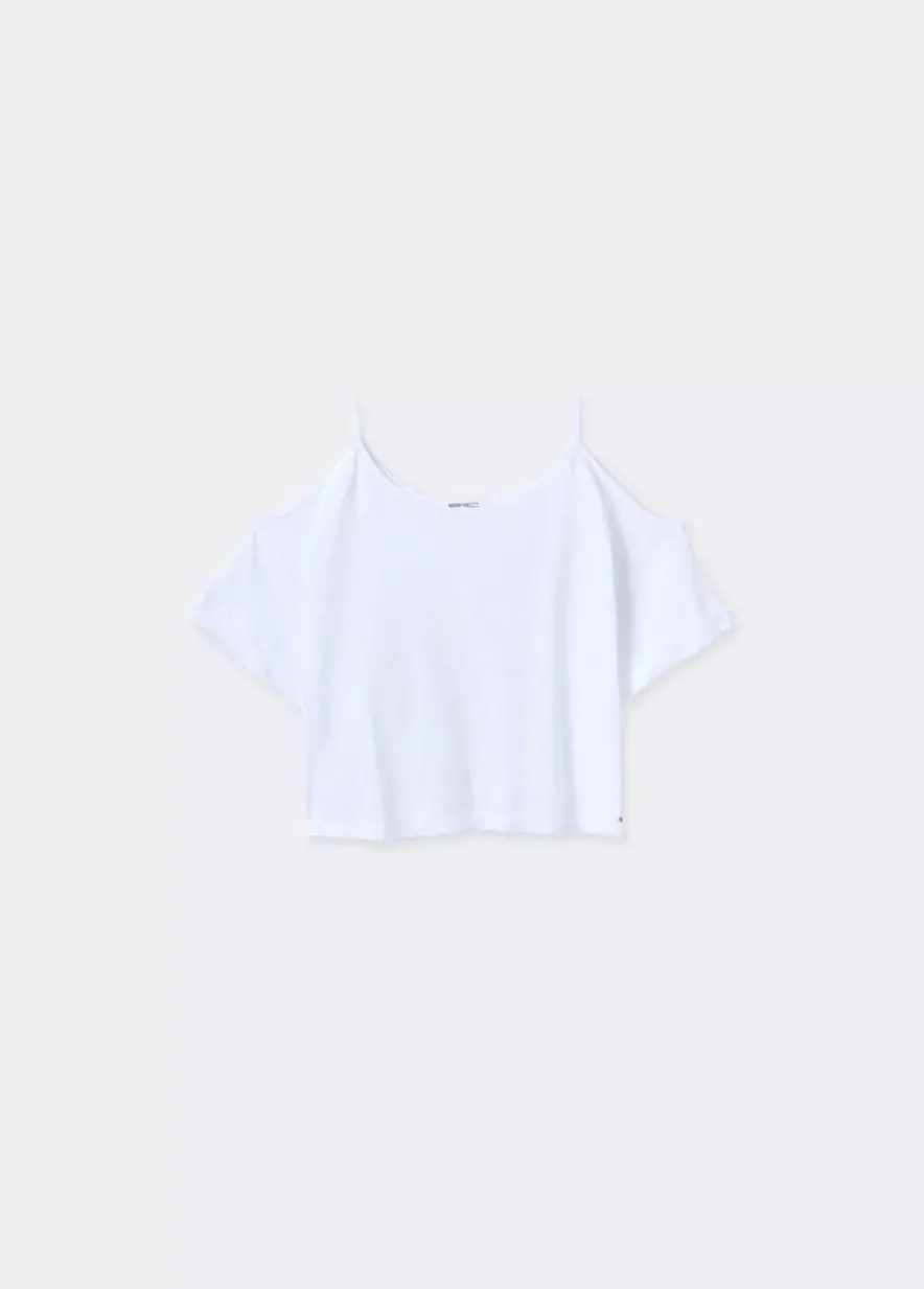 Camiseta Lisa De Manga Corta, Hombros Descubiertos Marcando Tirantes Finos Y Cuello Redondo.Composicion: