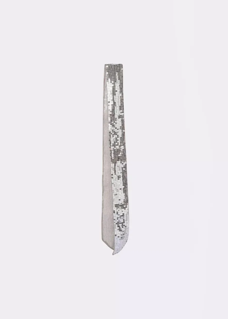Collar Corbatero Fino De Lentejuelas En Plata.Composicion: