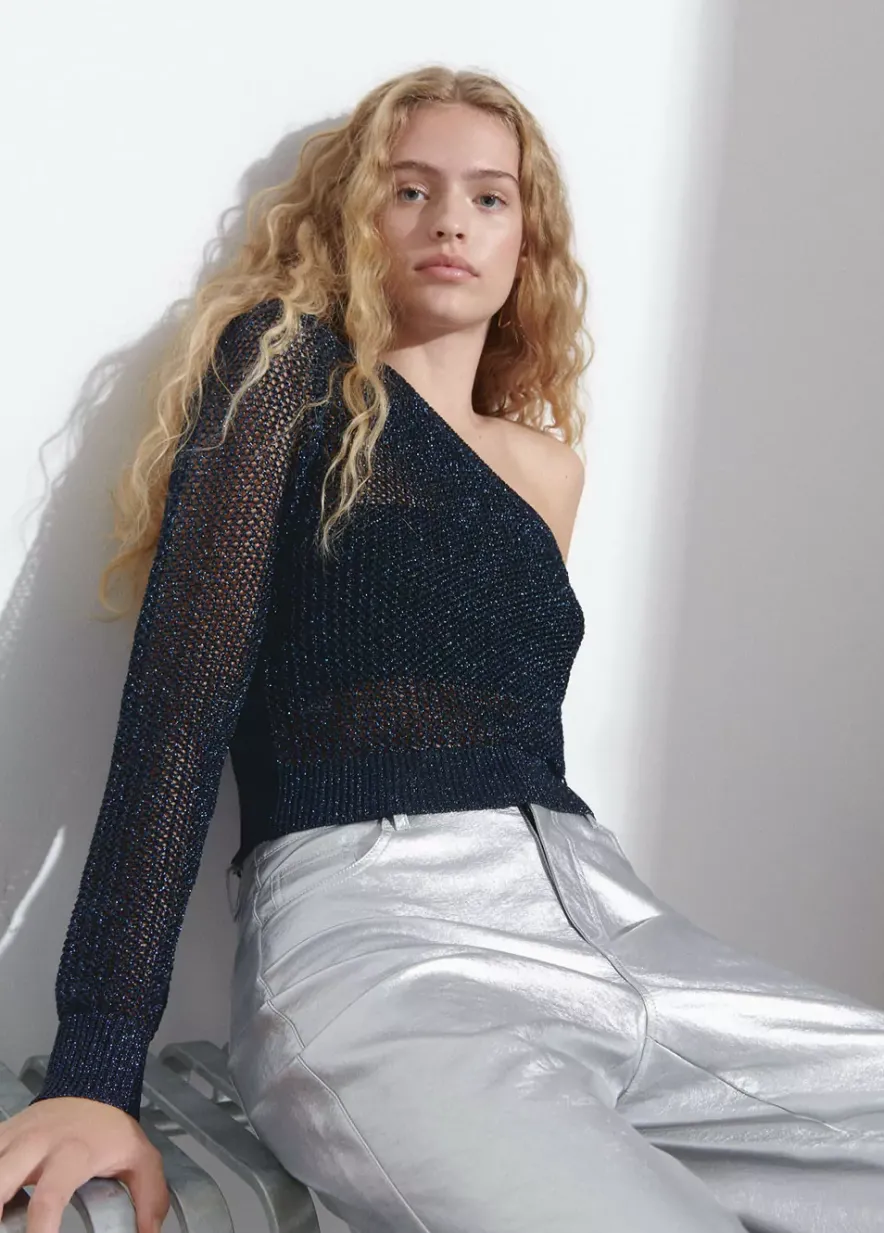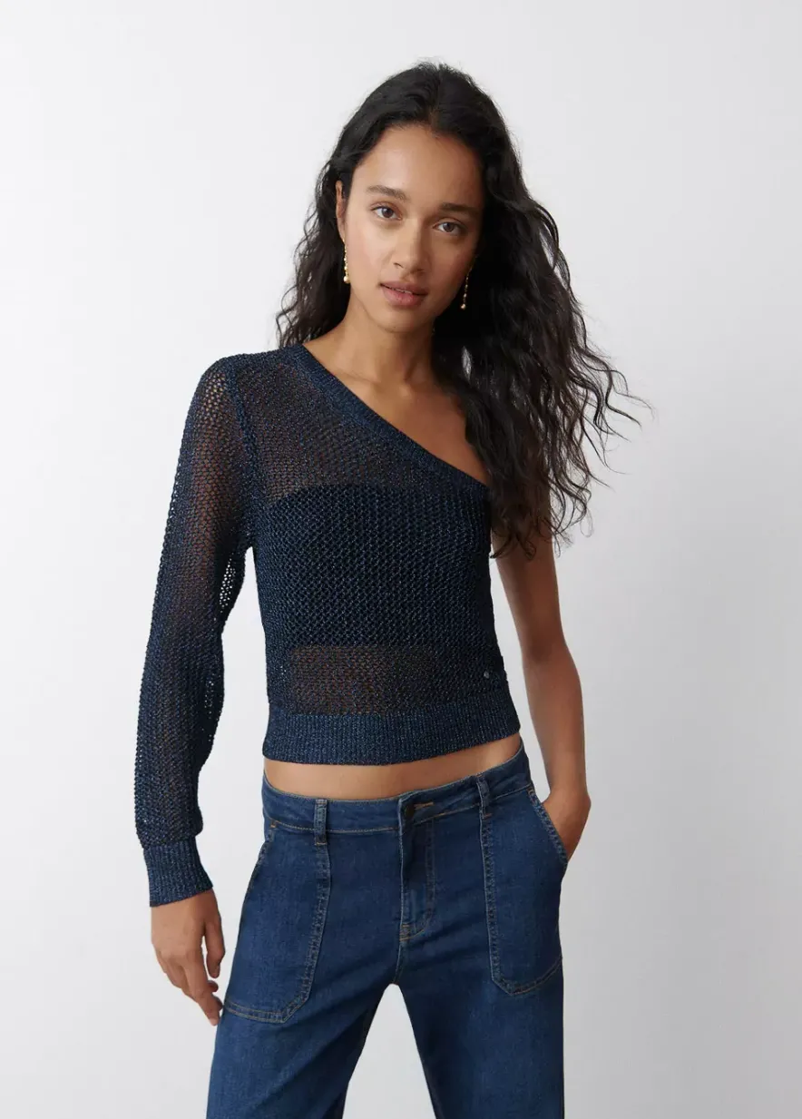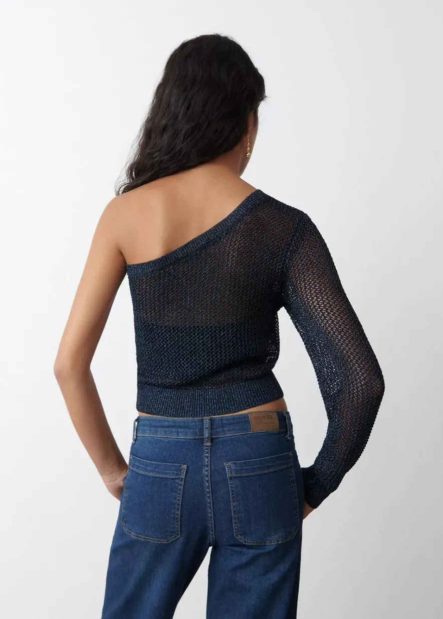 Jersey Asimetrico Calado De Hilo Metalizado Con Una Manga Larga.Composicion: