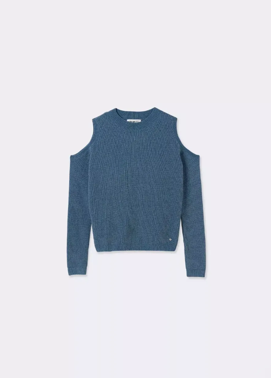 Jersey De Chenilla De Manga Larga, Hombros Descubiertos Y Cuello Redondo.Composicion: