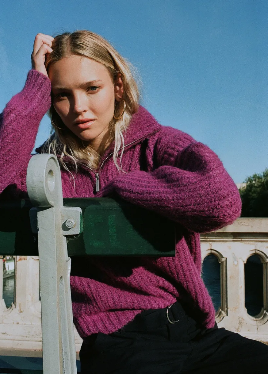 Jersey De Punto Grueso De Manga Larga Con Cremallera En El Cuello.Composicion: