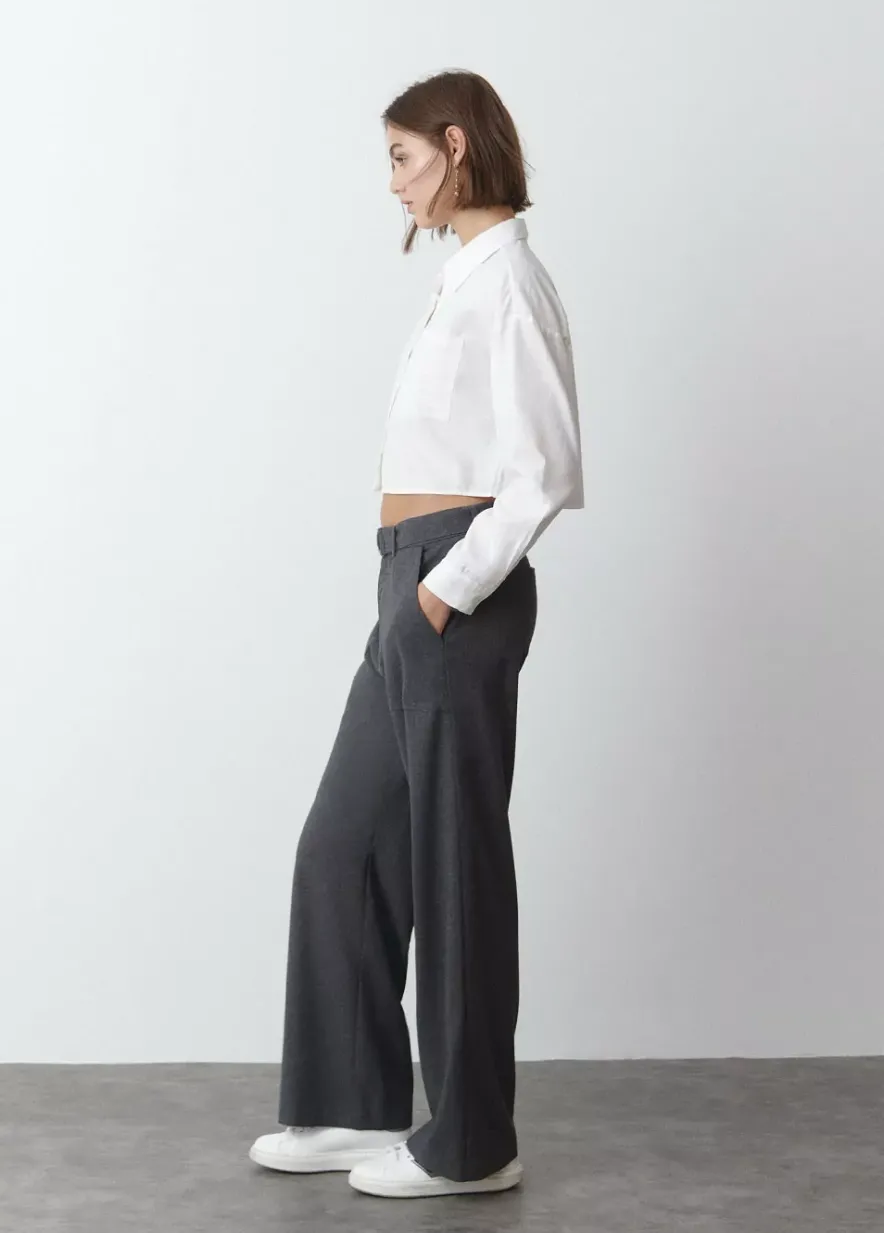 Pantalon Recto Liso De Tiro Medio Con Detalle De Cinturon Y Dos Maxi Bolsillos En El Frontal.Composicion: