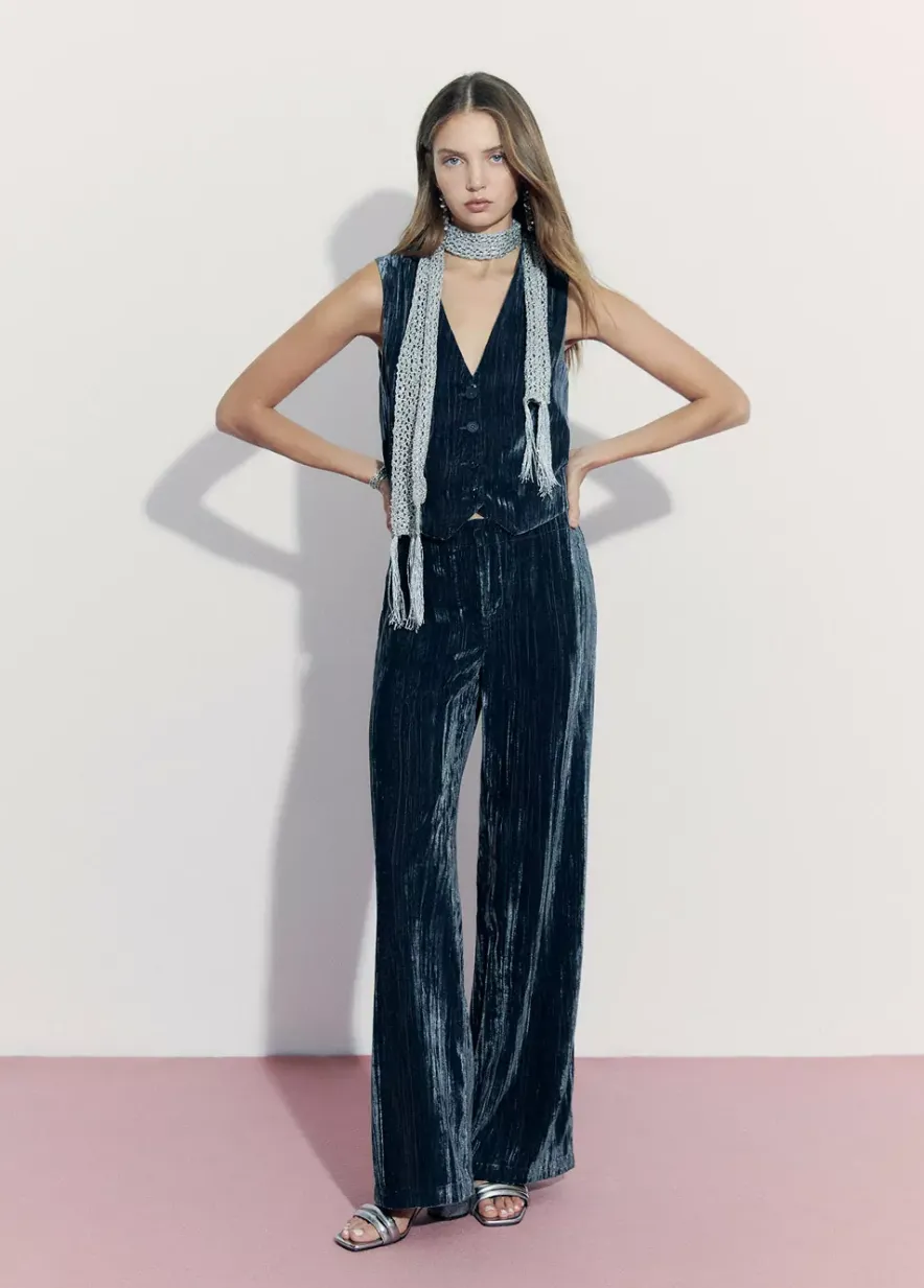 Pantalon Recto De Terciopelo De Tiro Bajo Fluido.Composicion:
