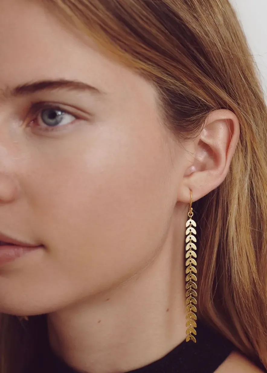 Pendientes Largos Dorados Con Forma De Hojas. Cierre De Gancho.Composicion: