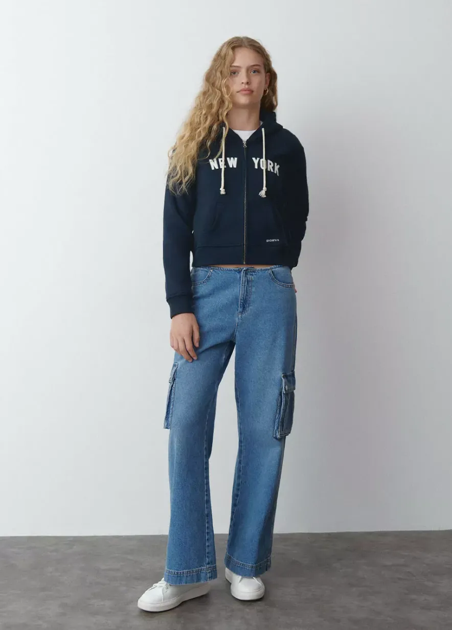 Sudadera Cropped De Manga Larga, Capucha Y Bolsillos. Cierre Mediante Cremallera En El Frontal.Composicion: