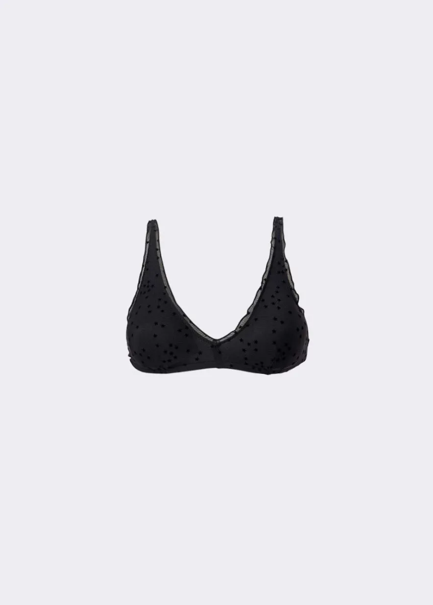 Sujetador Sin Aro De Tul Con Floc De Estrellas Y Tirantes Regulables.Composicion:
