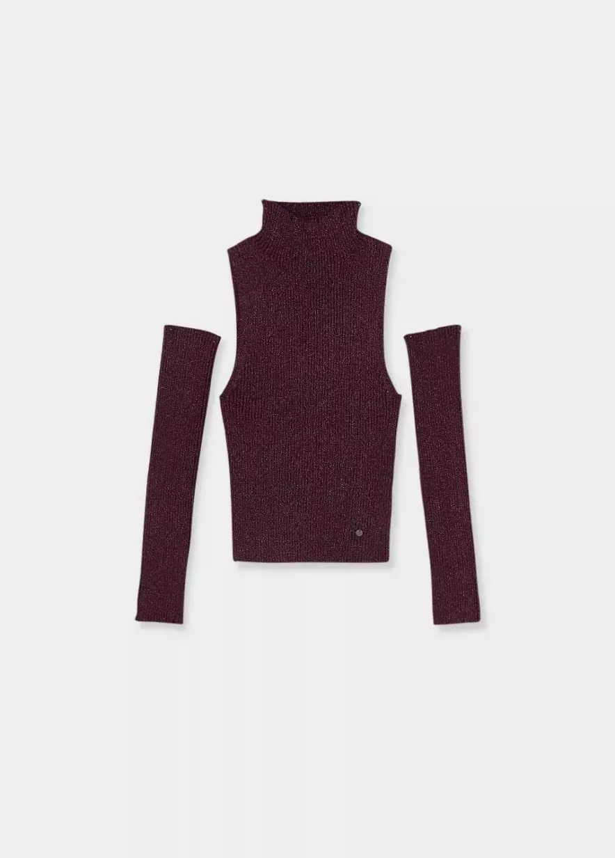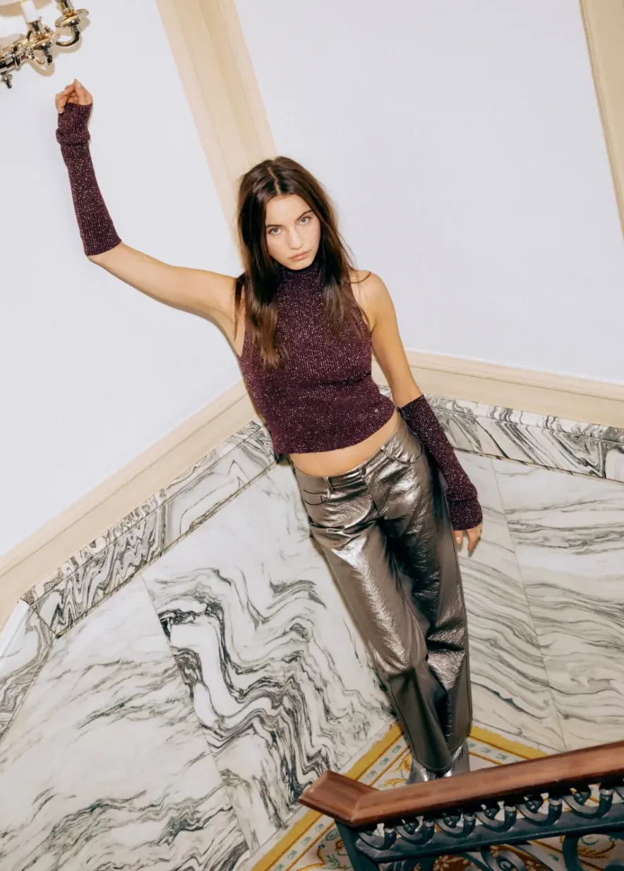 Top De Lurex Sin Mangas, Cuello Alto Y Detalle De Manguitos A Conjunto.Composicion: