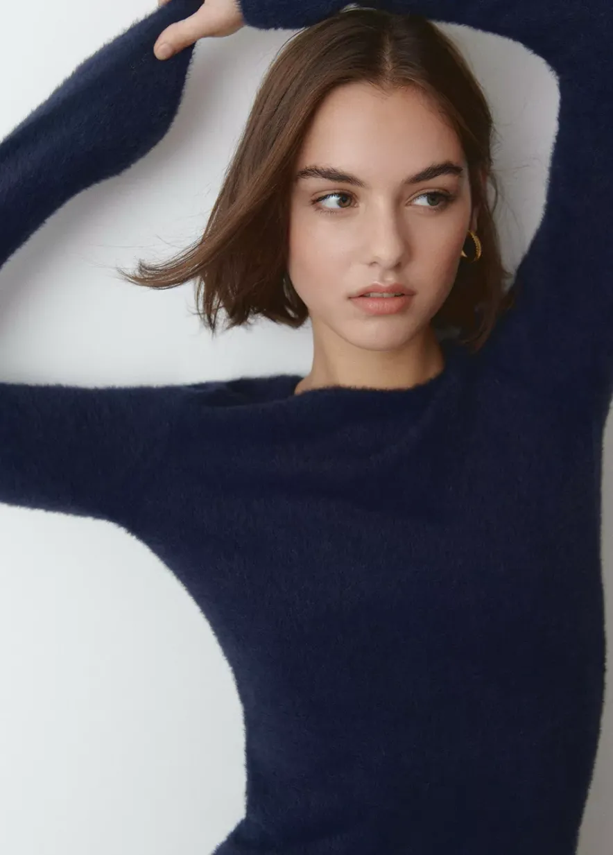 Vestido Corto De Pelo Sintetico De Manga Larga, Cuello Redondo Y Escote En La Espalda.Composicion: