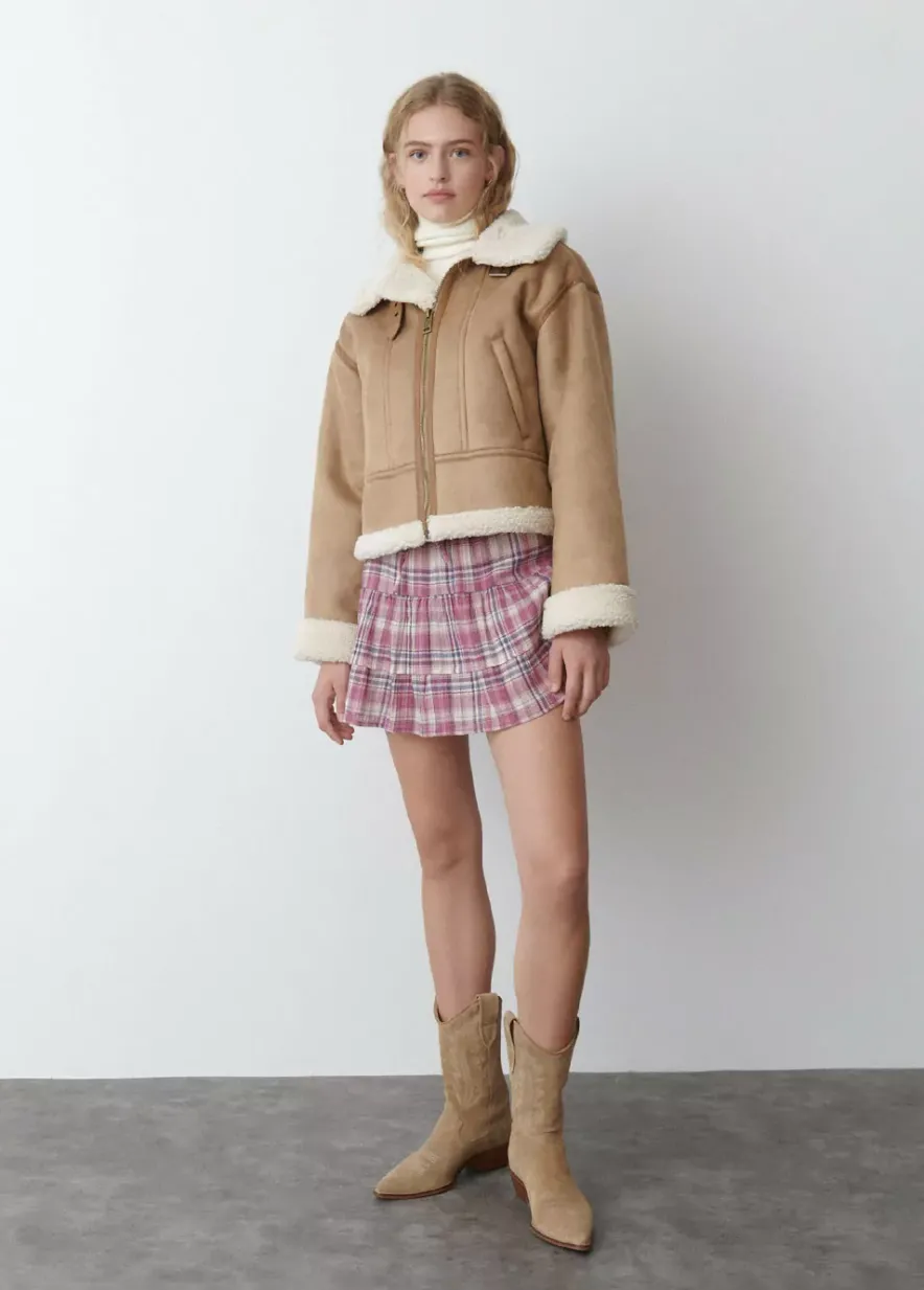 Cazadora Doble Faz Corta Efecto Piel De Manga Larga, Cuello Con Solapa De Borrego, Bolsillos Delanteros Y Cierre Mediante Cremallera.Composicion: