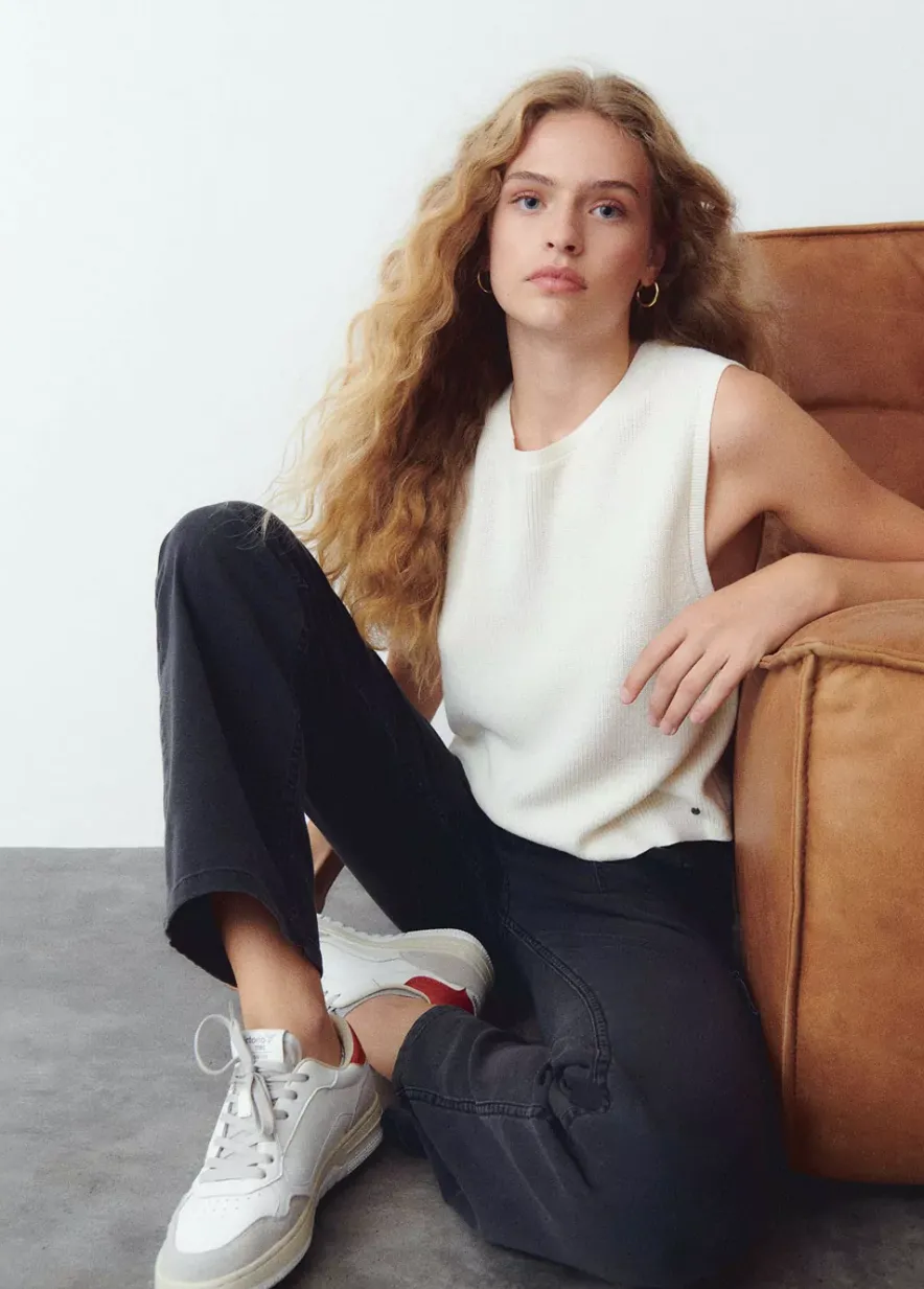 Chaleco De Punto Liso Sin Mangas Y Cuello Redondo.Composicion: