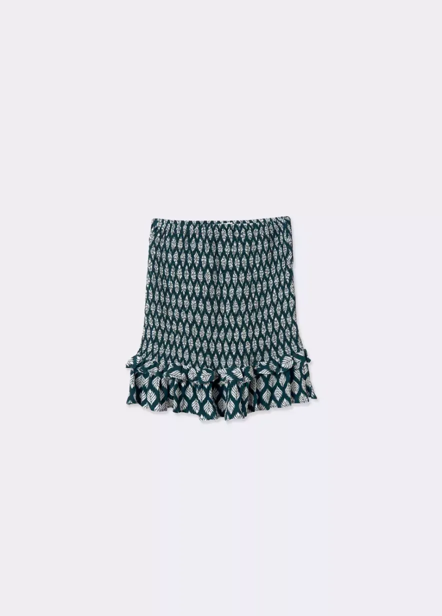 Falda Corta Estampada Con Smock En La Cintura Y Caida Con Volantes.Composicion: