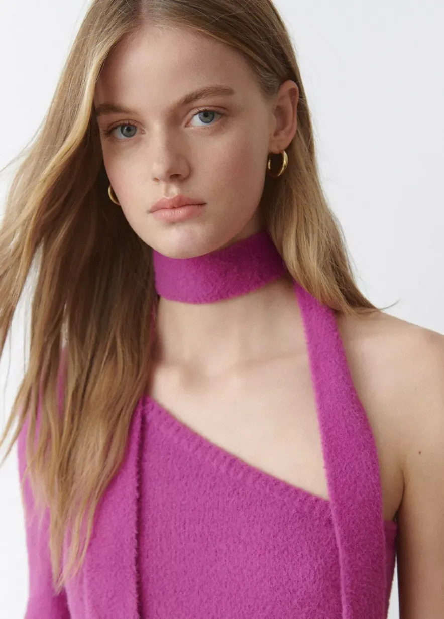 Jersey Asimetrico De Pelo Sintetico, Manga Larga Y Bufanda Fina A Conjunto.Composicion:
