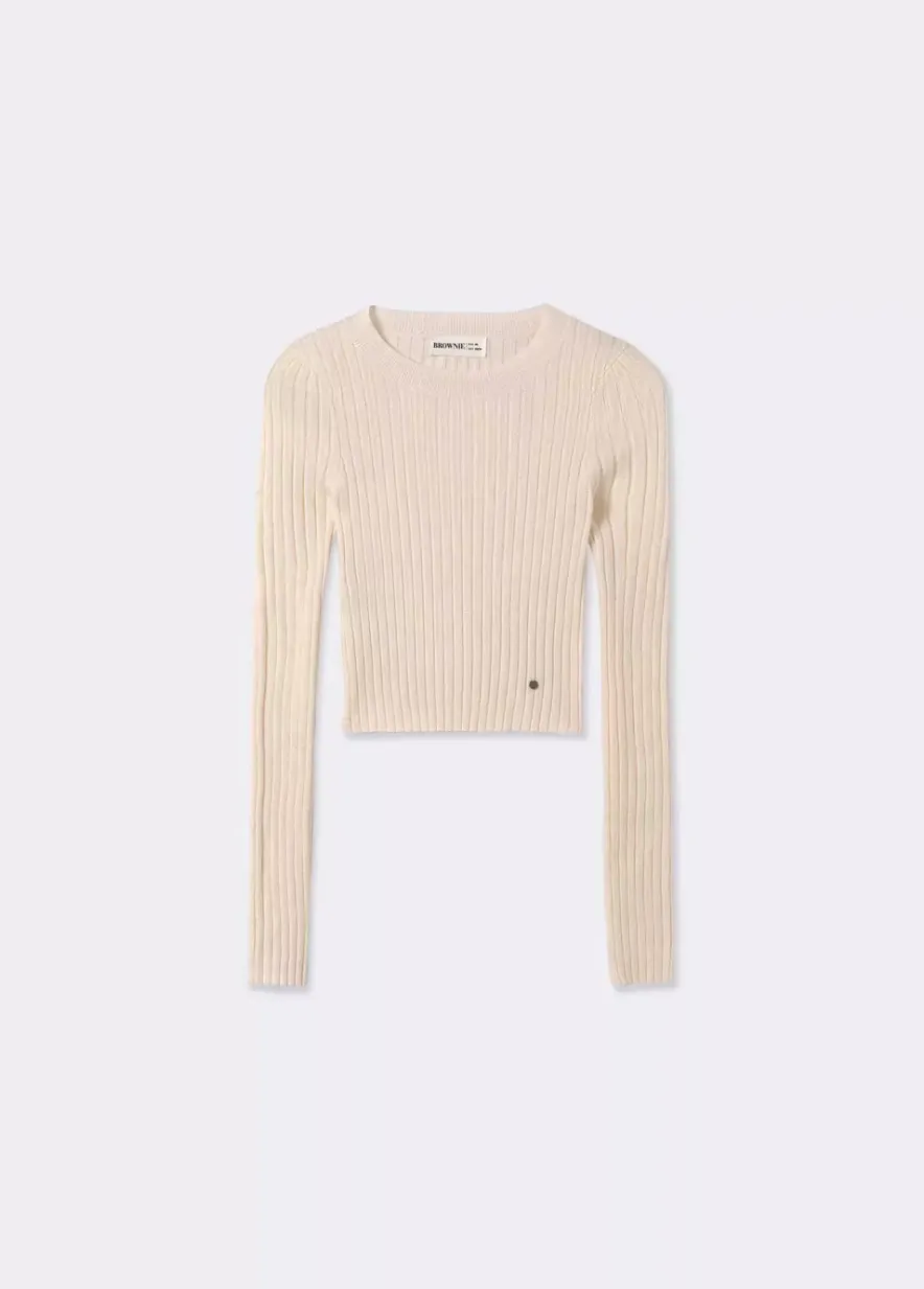Jersey Cropped Basico De Canale De Manga Larga Y Cuello Redondo.Composicion: