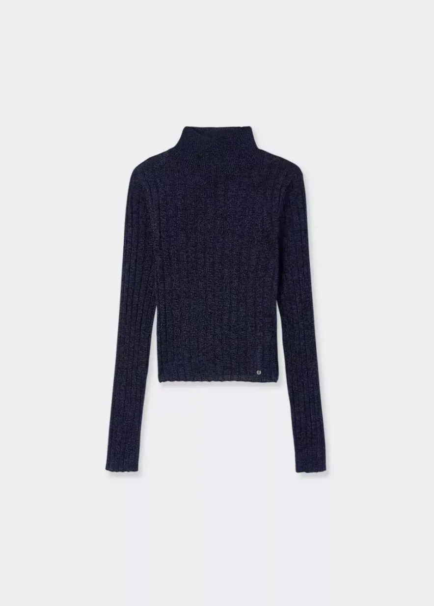 Jersey De Canale De Lurex De Manga Larga Y Cuello Alto.Composicion: