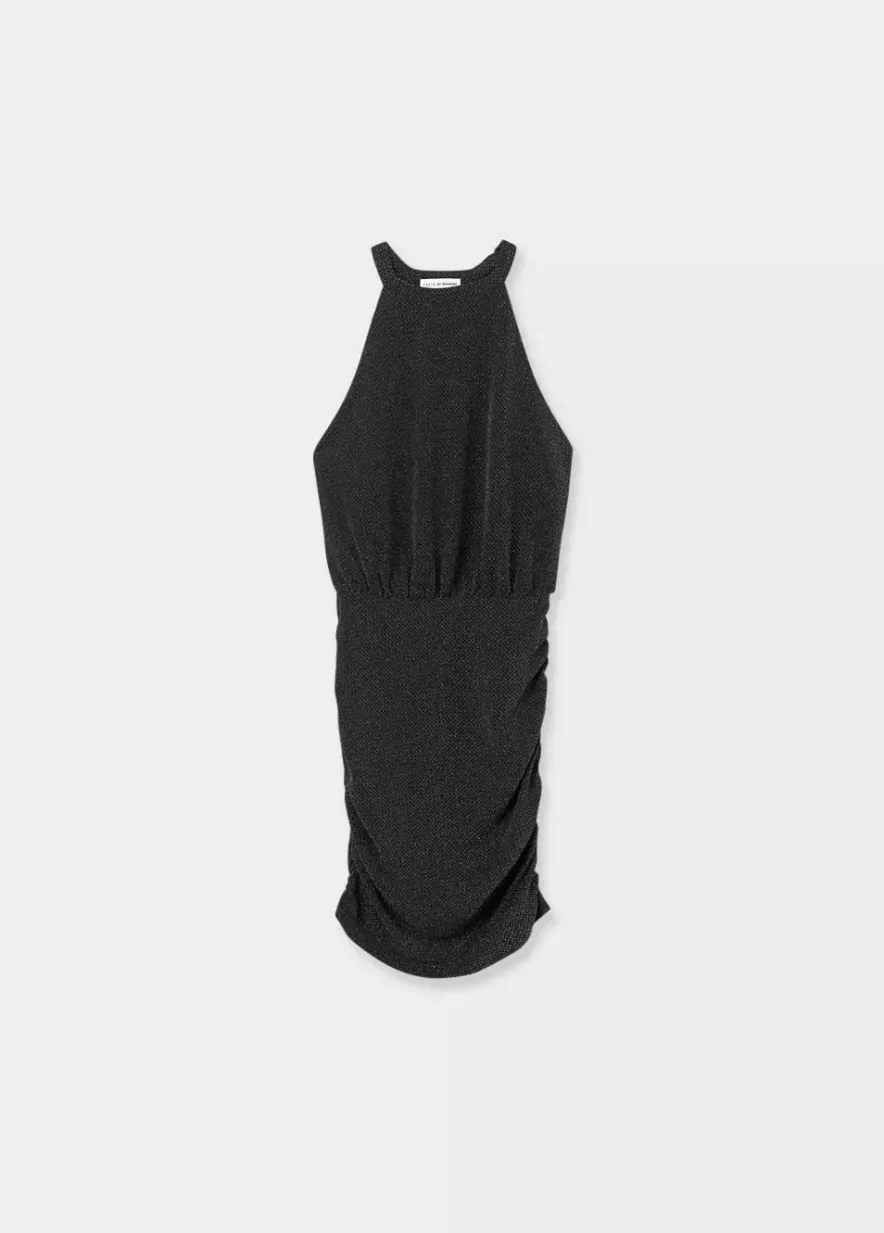 Vestido Corto De Hilo Metalizado Y Cuello Halter.Composicion: